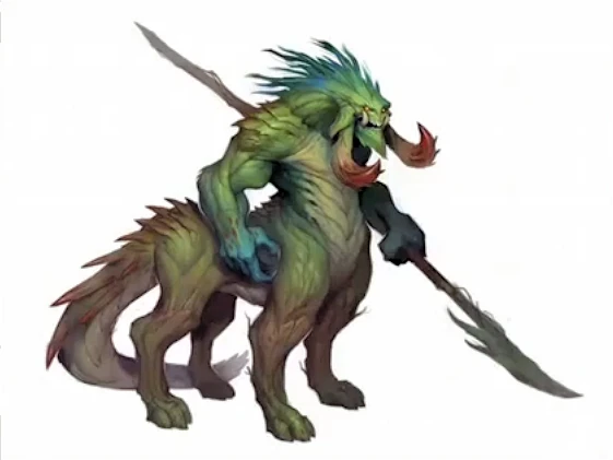 Arthak chose to stow his bow and then meet the charge. His nodachi bites deep into the flesh of the leading creature. Another one lowers its pike and then charges at Kaylaan. Arthak brings his sword to intercept the creature, but it leaps over Arthak’s blade and strikes at Kaylaan.